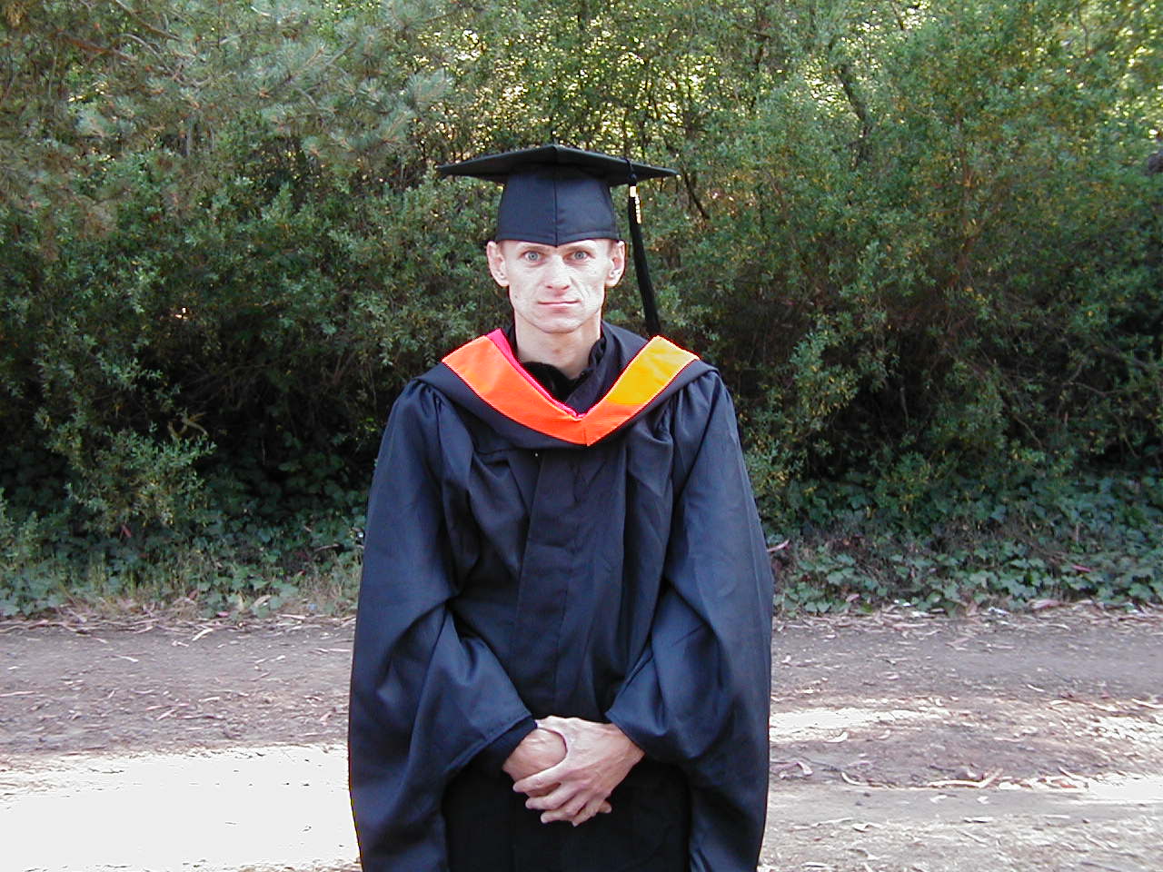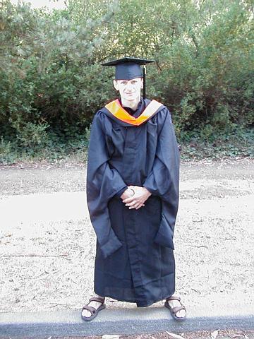 Андрей оделся в мантию Ильи и изображает выпускника магистратуры